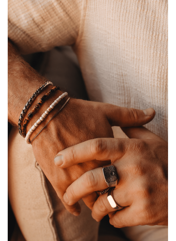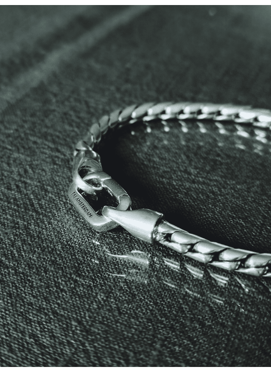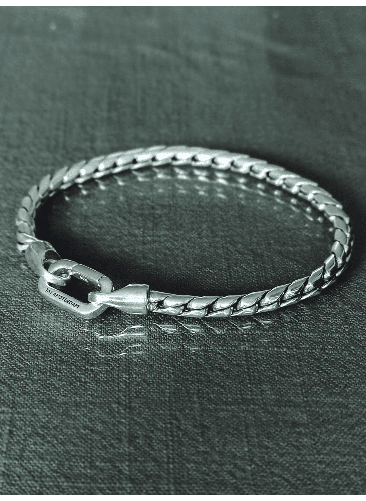 Een tijdloze snake chain basic met precies de juiste balans: niet te grof, niet te verfijnd. De Magnus-armband is subtiel aanwezig en makkelijk te combineren met andere sieraden, van horloges tot ringen of meerdere armbanden. Een veelzijdige essential voor elke dag.